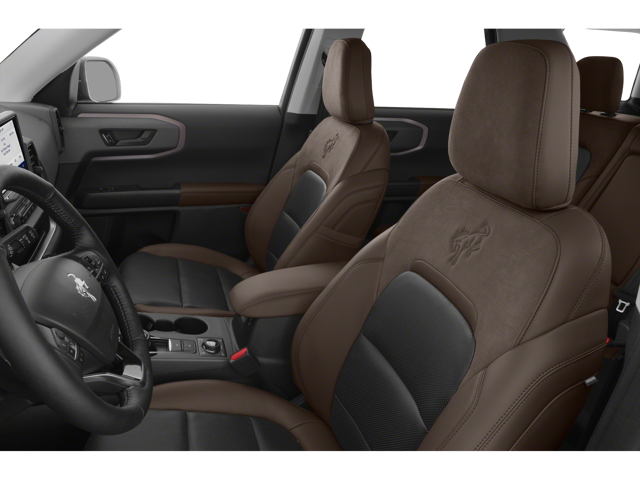 From the curb, you’d notice its carbon-gray grille with white letters spelling out Bronco. These models have a painted black roof for contrast. Inside, the cabin is made for adventures. A 6.5-inch digital screen assists the instrument panel. Easy-clean cloth and rubberized materials offer quick clean up after messy outdoor adventures.