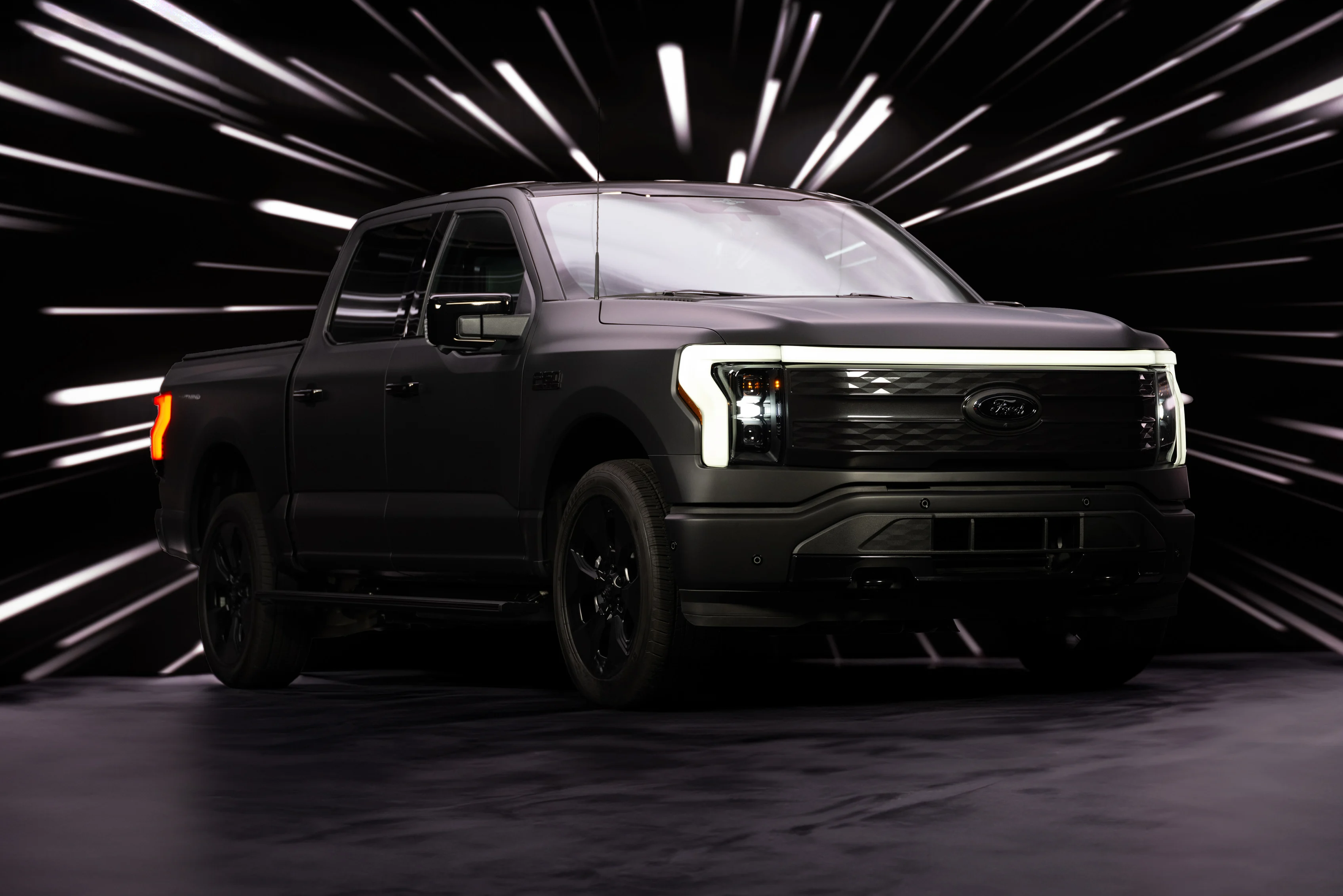 Lightning-specific graphics dress up the roof glass. At night, the black-on-black Lightning badge glows with the light from passing headlights. Even more fun, the signature light bar wears a smoked appearance.